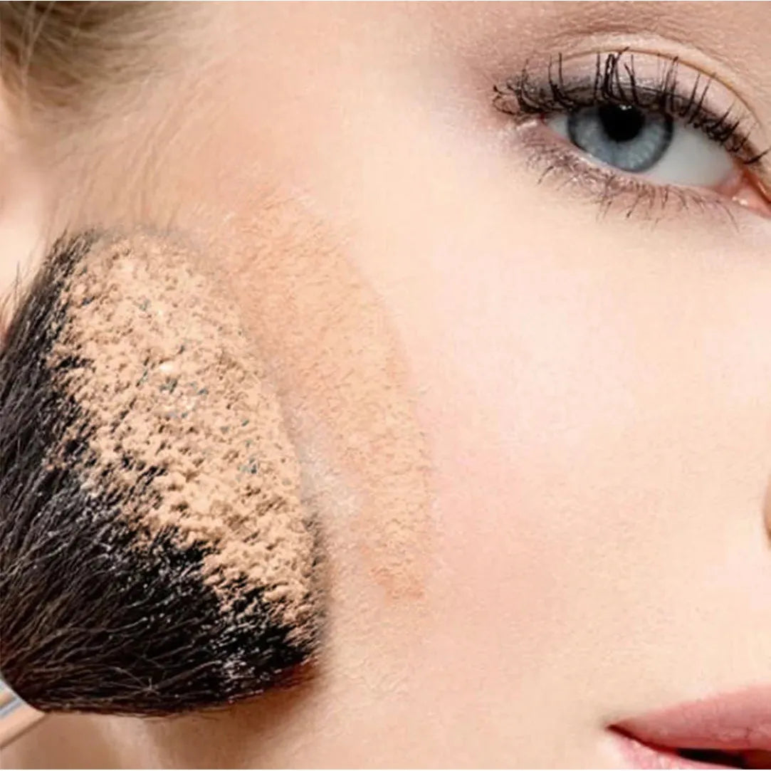 À l'aide d'un pinceau poudre, appliqué le fond de teint minéral. Pour une meilleur couvrance ajouter plus d'une couches.
